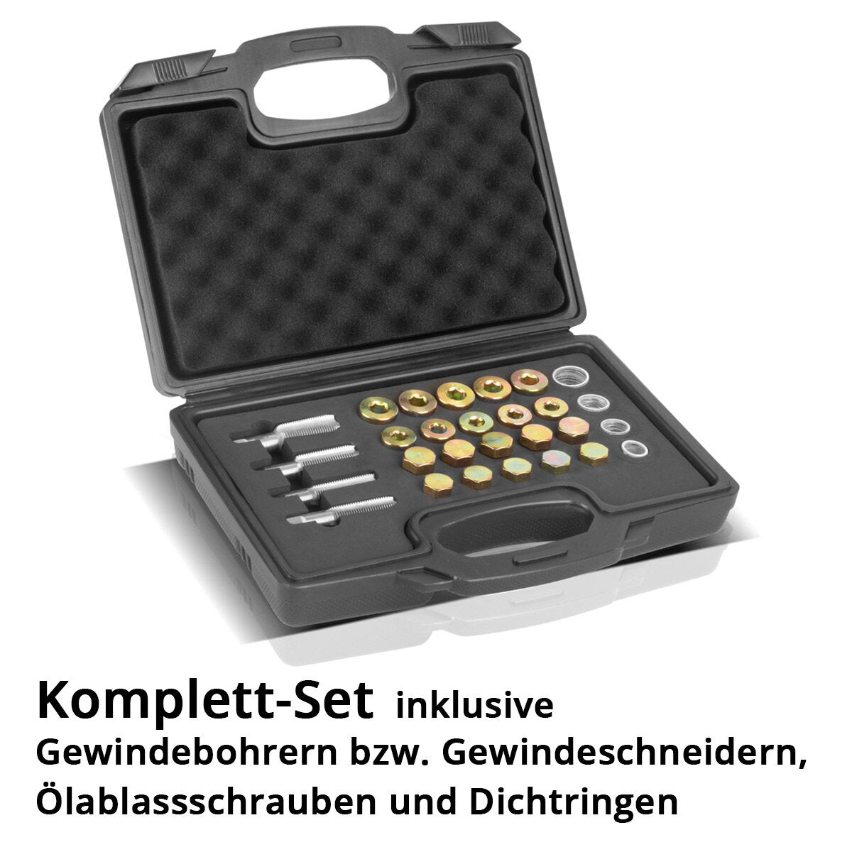 Yağ tavasında çalışma için mükemmel bir araç: 64 parçalı yağ drenaj vidası onarım seti, hataların profesyonel onarımı ve onarımı için idealdir. Tahliye vidaları kolayca hasarlı yağ tepsileri, dişliler veya diferansiyel vidalı vidalar ile değiştirilebilir. Evrensel olarak kullanılabilir iplik boyutları M13 / M15 / M17 / M20 ile, en yaygın araç türlerinin yağ tepsileri, tüm yağ tavasını doğrudan değiştirmek zorunda kalmadan birkaç basit adımda hızlı bir şekilde onarılabilir. Hasarlı iş parçacığı, musluk ile kolayca bir sonraki boyuta genişletilir. Yağ küveti onarım cümlesi, musluklar veya iplik kesiciler, yağ tahliye vidaları ve yüksek kaliteli bir taşıma kutusunda açıkça düzenlenmiş sızdırmazlık halkaları dahil olmak üzere eksiksiz bir set olarak verilir. İpliğin pratik ipliği ve burulma kümesi, araba atölyelerinde ve DIY'de profesyonel kullanım için idealdir.