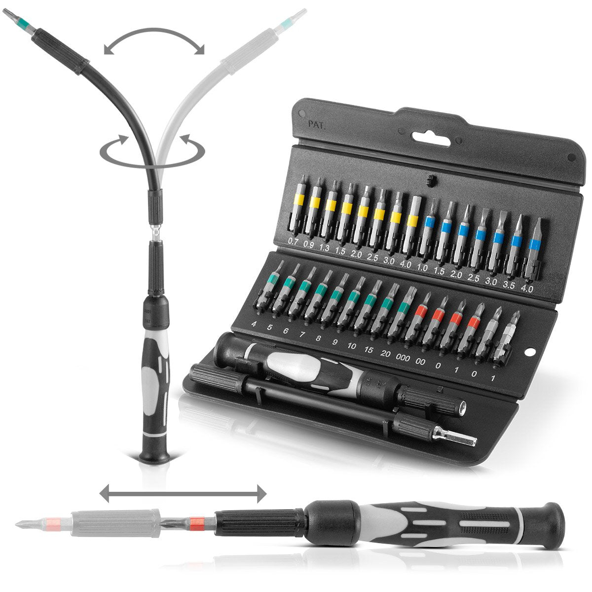Steelworks 32 parçalı hassas tornavida ve esnek uzantı ve teleskopik saplı krom vanadyumdan yapılmış bit seti