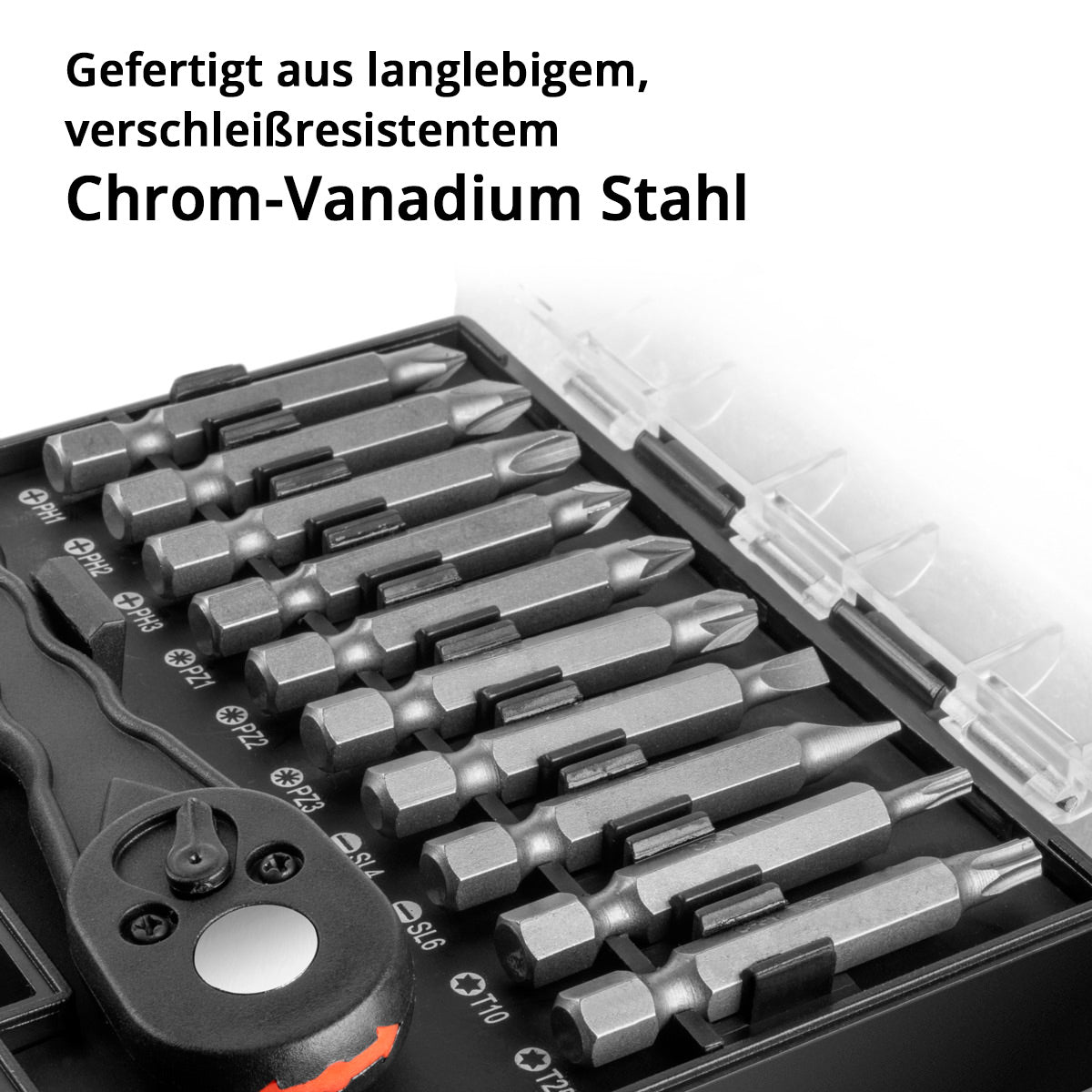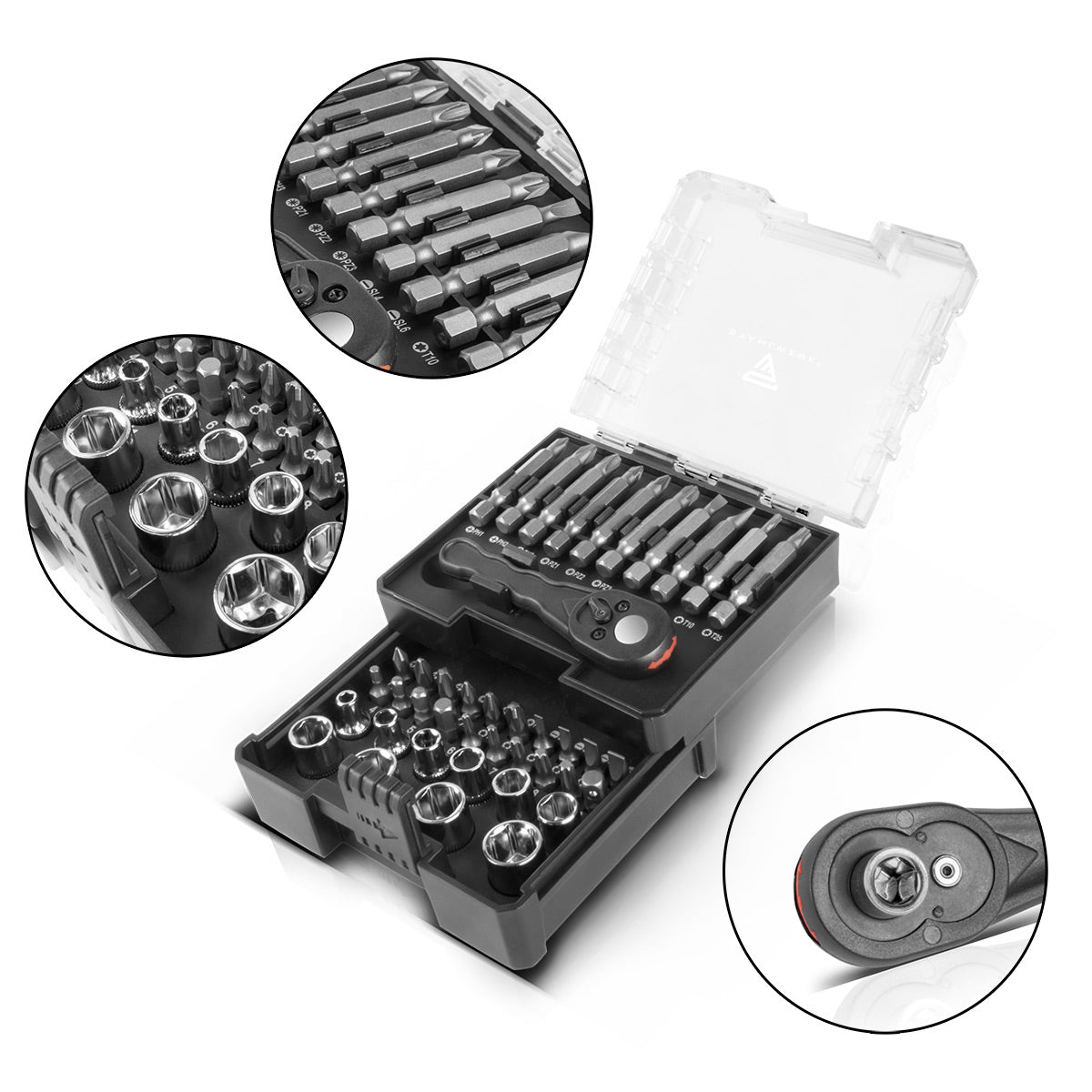Steelworks 41 parçalı tornavida seti, ısırık seti ve soket anahtarı seti, krom vanadyumdan yapılmış, kutuda / cırcır seti / tornavida seti