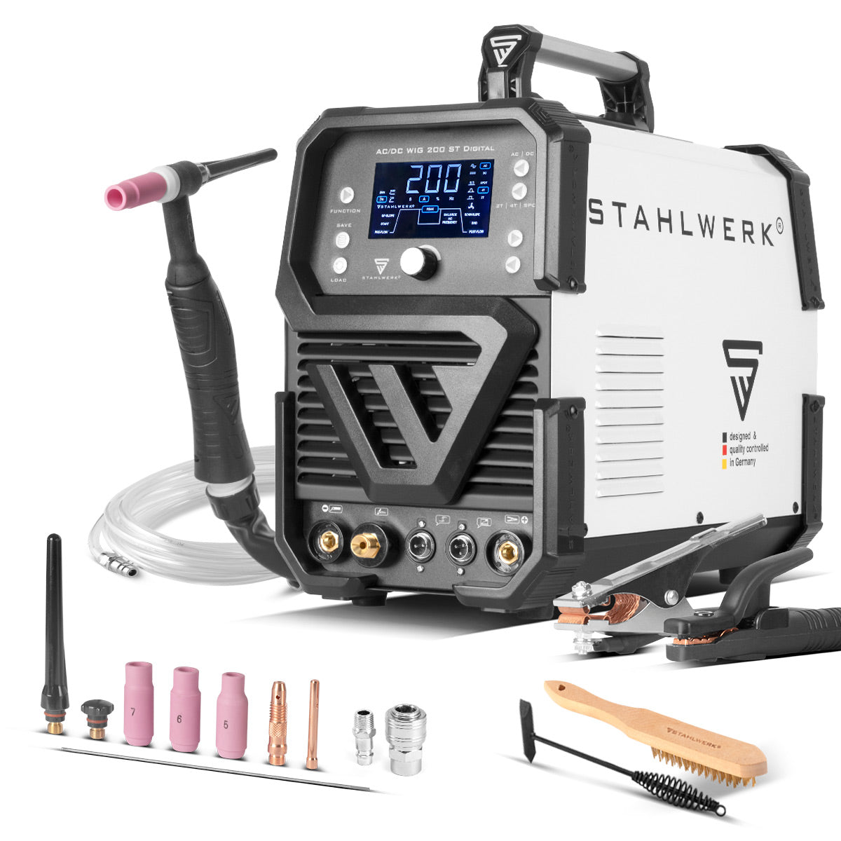 Steelworks Kaynak Makinesi AC/DC WIG 200 ST Dijital | Combi Kaynak Cihazı | Spot Fonksiyon | Combi Kaynak Sistemi | Entegre temiz fonksiyonlu 200 A ile alu-uygun peruk mma inverter